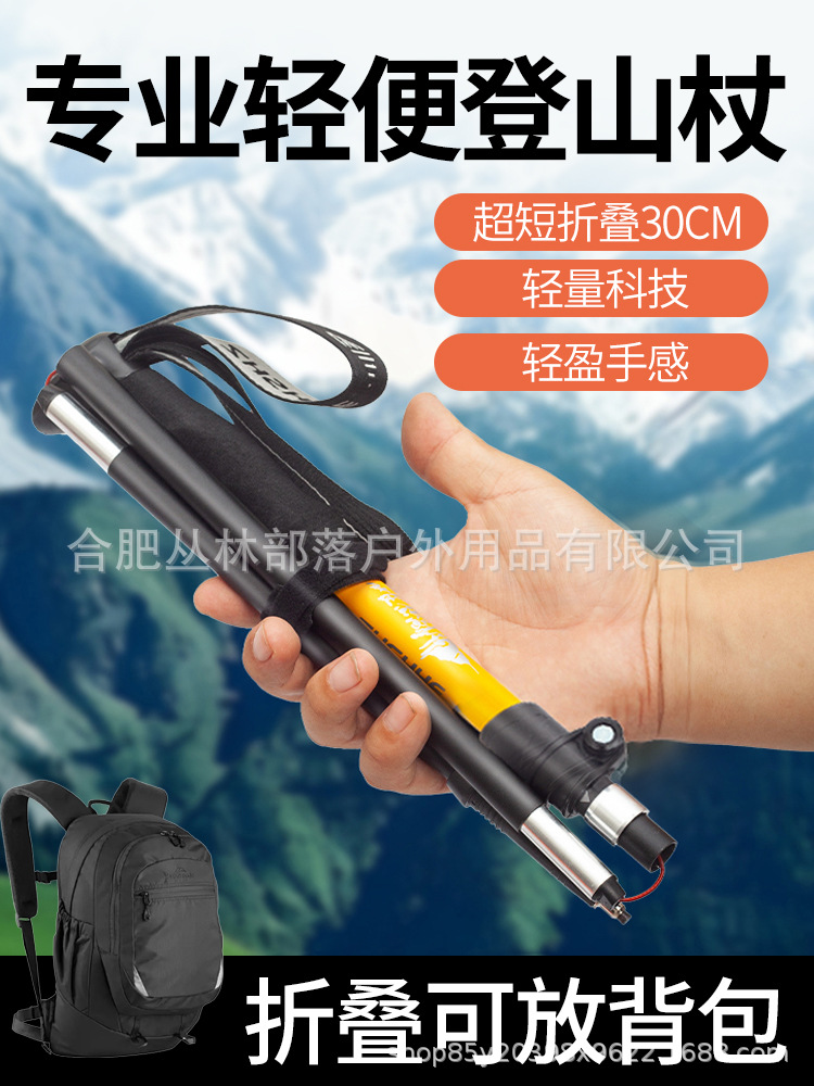 户外登山杖手杖 徒步折叠伸缩外锁拐杖 铝合金行走健走杖爬山装备