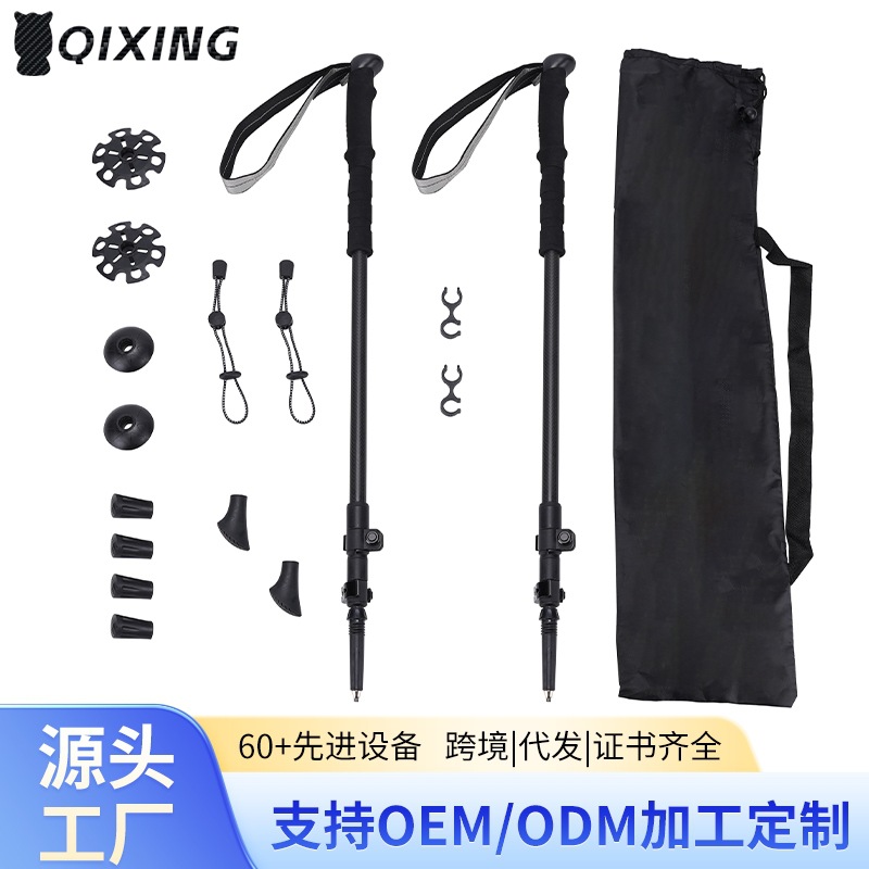 跨境批发碳纤维防滑徒步登山杖越野户外伸缩爬山专用多功能助行器